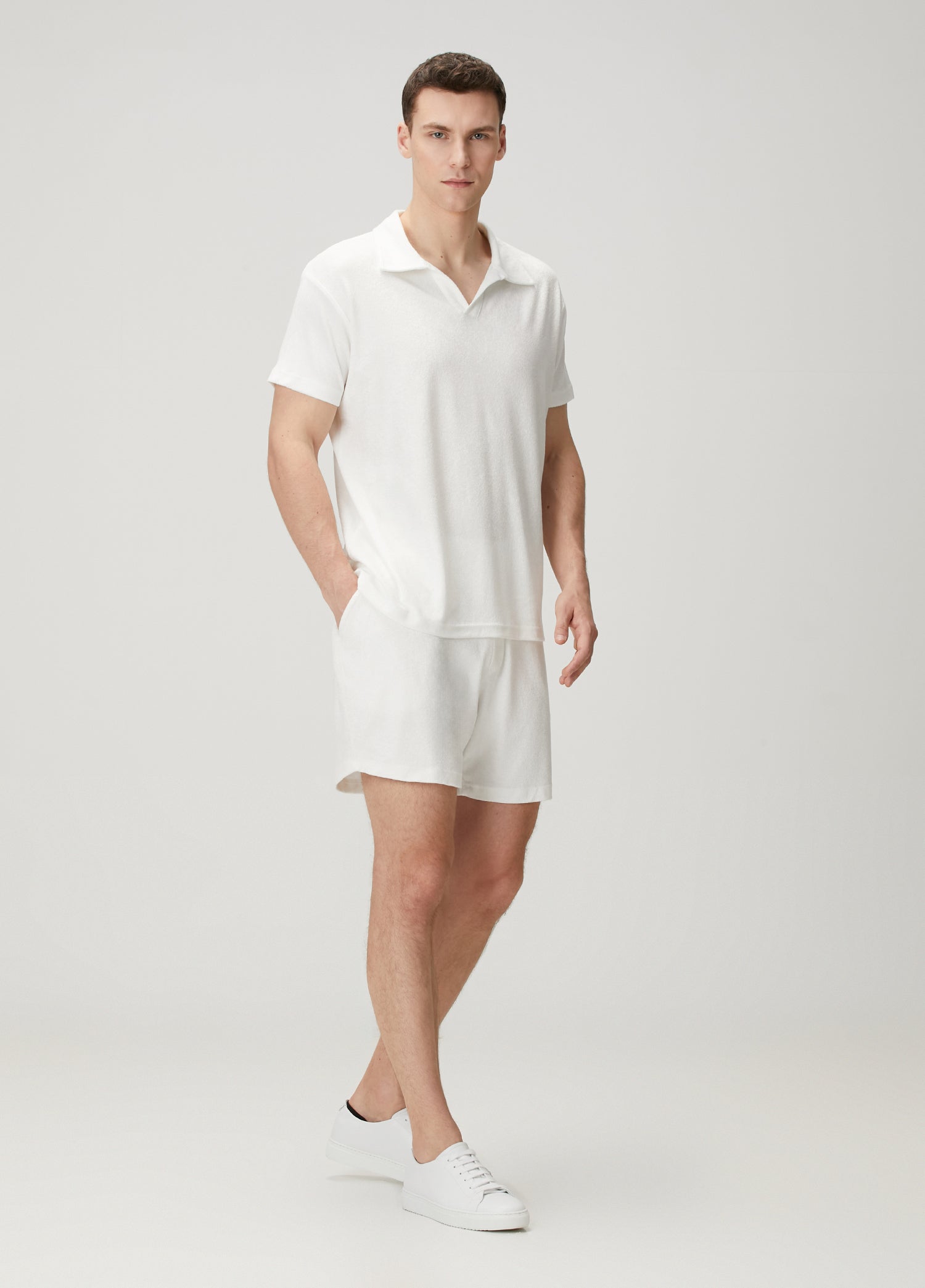 Qsimple Towelling Luxe Modal Beyaz Muscle Up Fit Polo T-Shirts