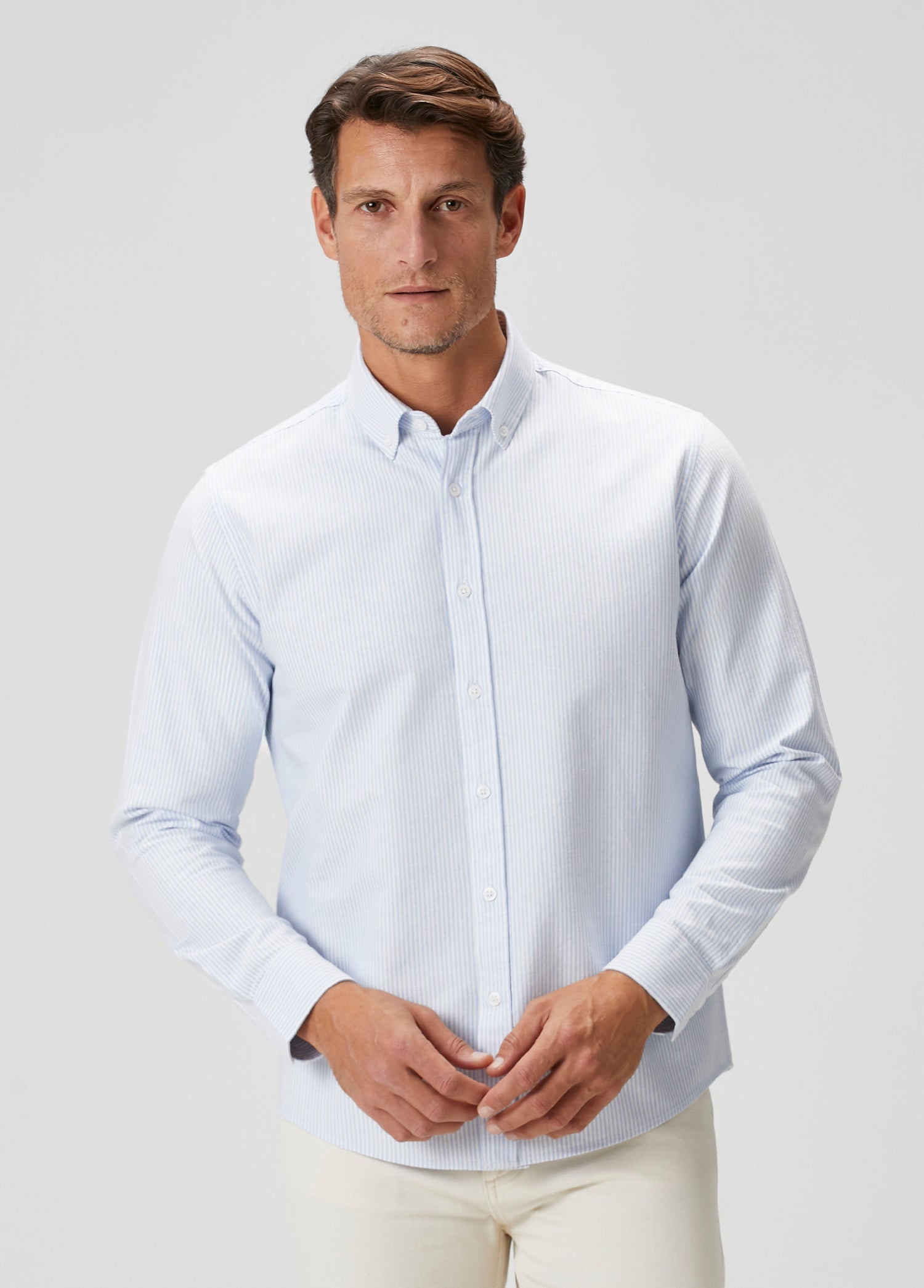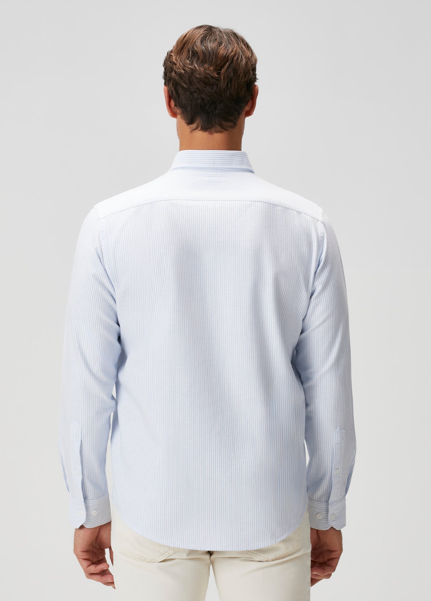 The Investor | Qsimple Muscle Fit Oxford Gömlek-Blue Stripe