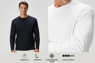 Yumuşak ama tok interlok dokusu sayesinde her ortamda temiz ve güçlü bir duruş sağlar.Soğuk günlerde ekstra sıcaklık katarken, yapısı sayesinde sıcak havalarda da konforlu kullanım sunar.Premium Interlok Qsimple Muscle Up Fit, her mevsim fit bir görünüm ve üst düzey konfor arayan erkekler için tasarlandı.