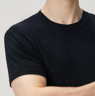 Havlu dokusunun zamansız şıklığı, markamıza özel MuscleFit kalıbın rahatlatılmış versiyonuyla birleşiyor.